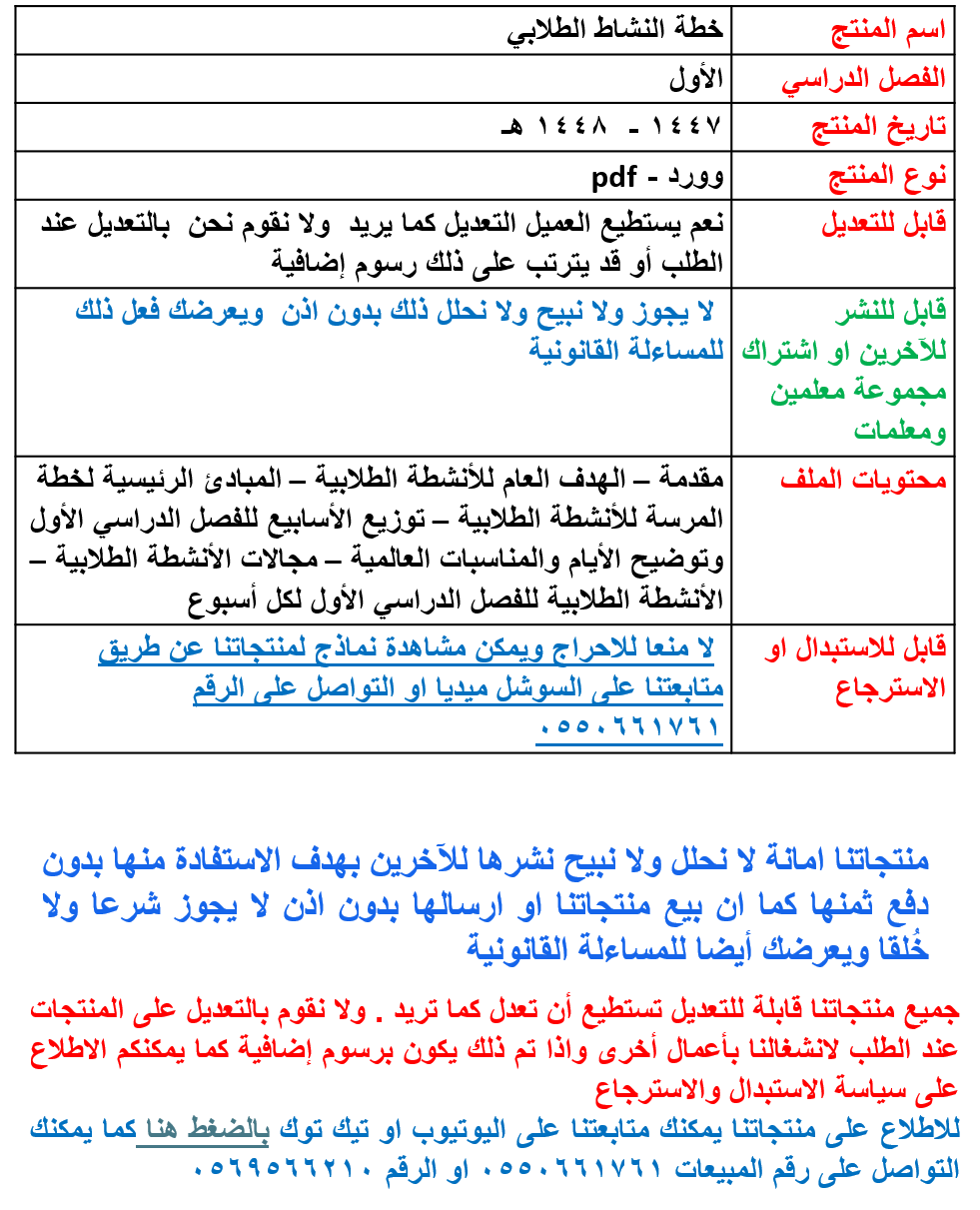 خطة النشاط الطلابي للعام الدراسي 1447هـ